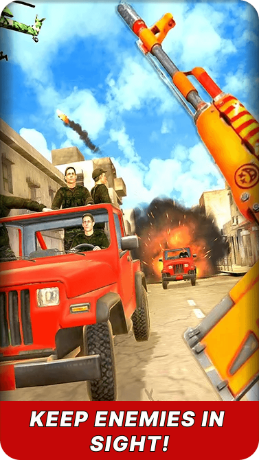 The game features multiple advanced weapons, easy and smooth control in the war simulator, interesting missions, a realistic environment, addictive gameplay, smooth controls, and realistic sound effects. Download and play for a real-time shooting experience in the war simulator.